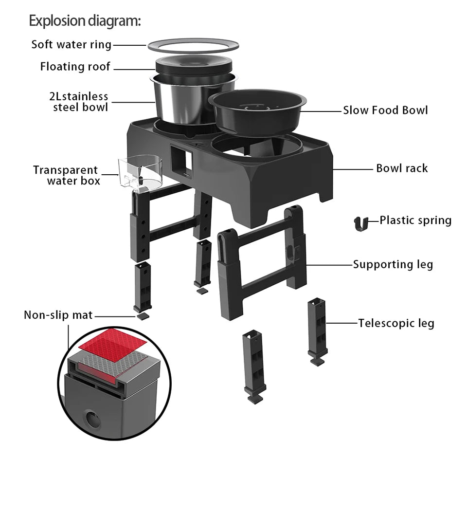 Ehi, amico a quattro zampe! 🐕 Vuoi mangiare e bere senza preoccupazioni? La ciotola elevata è qui per te! Con 4 altezze regolabili, è perfetta per accompagnarti mentre cresci! 🍽️ Mangia lentamente con lo slow feeder, così la tua pancia sarà felice e non avrai più problemi di peso! 🐾💖 E che dire del fantastico beverino? Niente più pozzette sul pavimento! 🌊🧼 Con il suo design antiscivolo, mangiare diventa un gioco da ragazzi! Scegli il meglio per il tuo amico peloso. Scelto per te da GodSaveThePet! 🌟🐾